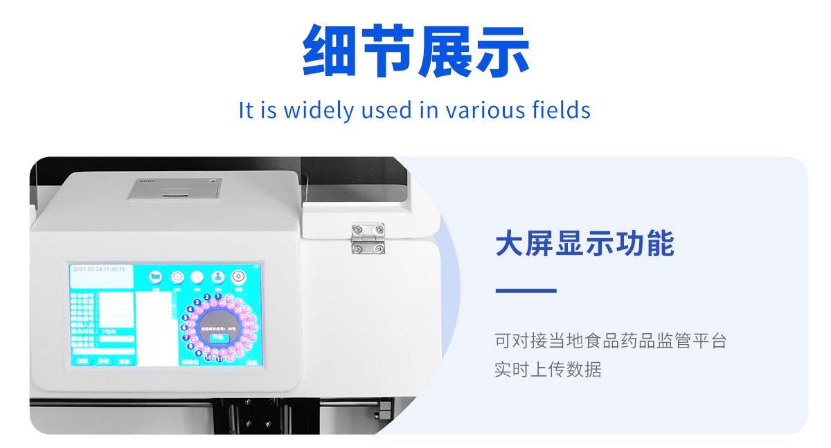 廣泛應(yīng)用于主要用于蔬菜、水果、茶葉、糧食、農(nóng)副產(chǎn)品等食品中有機(jī)磷和氨基甲酸酯類(lèi)農(nóng)藥殘留的快速檢測(cè);此外還可用于果蔬茶生產(chǎn)基地和農(nóng)貿(mào)批發(fā)銷(xiāo)售市場(chǎng)現(xiàn)場(chǎng)檢測(cè),餐館、學(xué)校、食堂、家庭果蔬加工前的安全速測(cè)等,為廣大人民的生活安全提供保障。